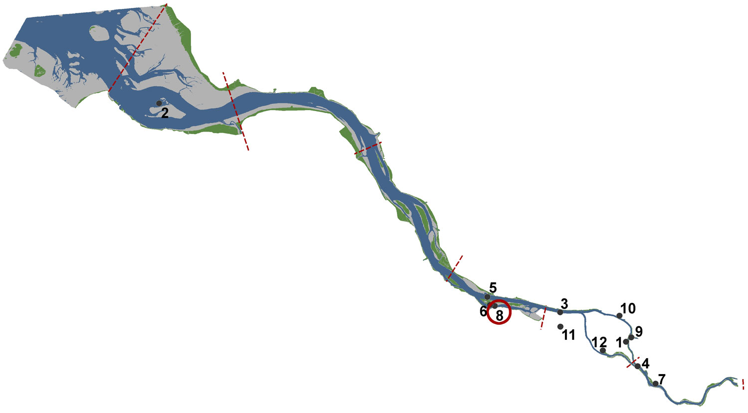In 2001 the measure “Hahnöfer Sand” was implemented as a compensation for the intervention in the ‘Birds & Habitat Directive’ (BHD) by the expansion of the Airbus company. The habitat type ‘Estuaria’ (mudflat and shallow water area) had to be created as feeding and resting area for birds, especially the ’Northern Shoveler’ (Anas clypeata) and as a habitat for the ‘Elbe Water Dropwort’ (Oenanthe conioides).