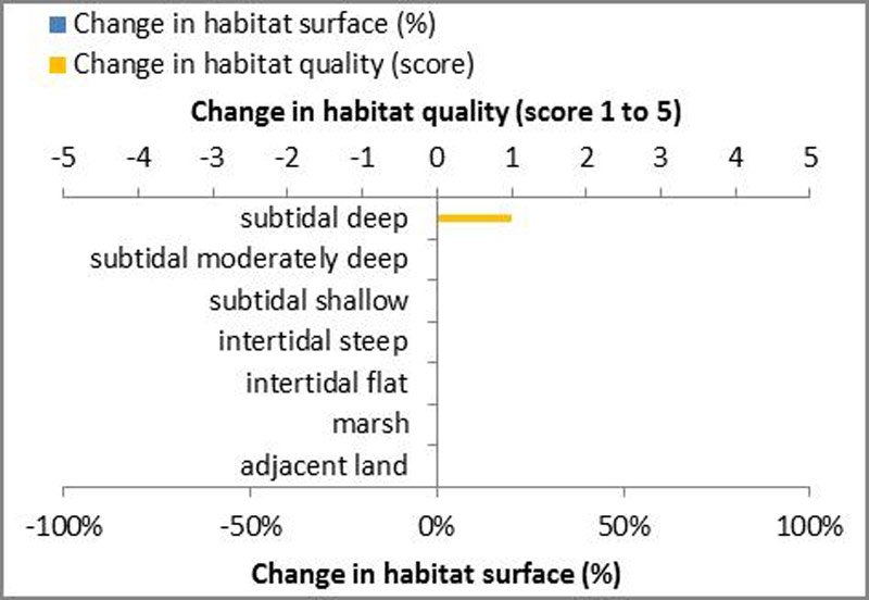 Before the implementation of such a measure the quality of this habitat to deliver the service ‘dissipation of tidal and river energy’ is low because of the presence of deeper areas.