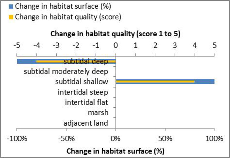 Before the measure, the relocation area consisted mainly of subtidal deep habitat and a small part of subtidal moderately deep habitat and subtidal shallow habitat.